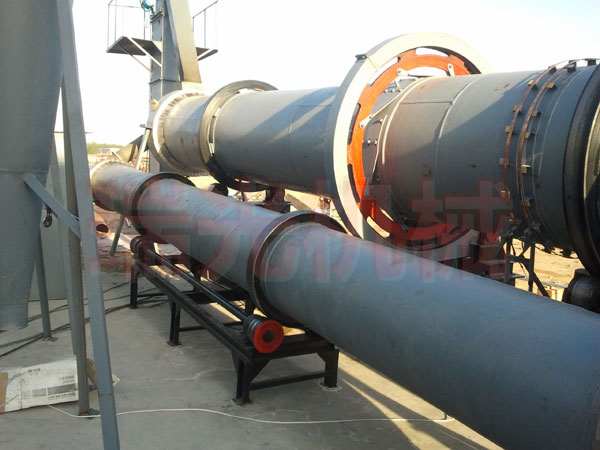 工业烘干机的热源来自燃烧装置,本烘干机采用顺流式加热方式。因此需要烘干的物料,从进料箱、进料溜进入筒体,即被螺旋抄板推向后。由于烘干机倾斜放置,物料一方面在重力和回转作用下流向后端,另一方面物料被抄板反复抄起,带至上端再不断地扬撒下来,使物料在筒内形成均匀的幕帘,充分与筒内的热气流进行热交换,由于物料反复扬撒,所含的水分逐渐被烘干,从而达到烘干的目的。