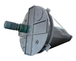 功能: 锥形混合机应用于温和搅拌与出料无残留效果要求的混合装配。双螺旋式锥形混合机是一种高效的对流混合机。它能够温和地混合产品, 在不损坏物料的前提下保证高精度的混合。自悬臂悬挂下来的两根不同旋转半径、不同长度的螺旋在锥形筒体内做三维复合运动, 与此同时,两根螺旋还做自转运动。此外, 这种混合机还能起临时混合的中间储存作用。此种混合机适用于粉体、浆料、晶体、粒状或团状粉体以及配合加液的搅拌工艺。