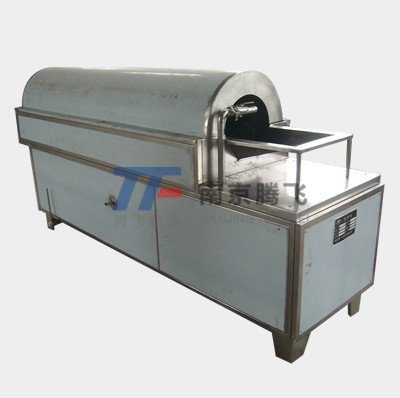 该机采用整体旋转式,进料口,出料口、简筒全部采用不锈钢板制成,配有高压水泵喷淋系统,水源可以用自来水源、直接水源二用,一次冲洗,采用内螺板推动物料,实行连续生产,自动出料,对特殊品种可反复倒顺直至洗净。该机可配有传动输送机,它取代了传统手工操作方法,改善了劳动强度和场地污染,真正做到了省时、省力、功效快、质量好、具有噪音小、筒体旋转平稳的特点。