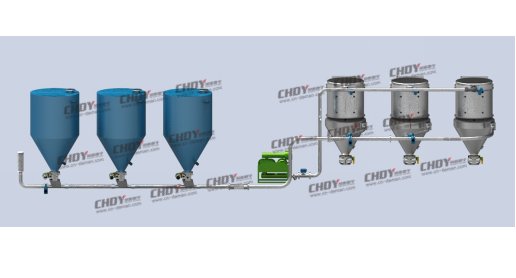 它是利用低于1kg/cm2 的气体压力,采用负压(吸送式),以较高的速度来推动或拉动物料使其通过整条输送线,因此该输送方式被称之为低压高速系统,它具有较高的气体-物料比。