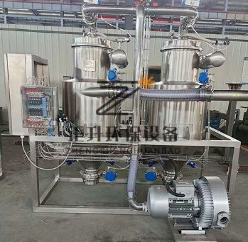 连续上料式真空上料机系统工艺说明:本套上料机系统为两台或多台真空上料机组合,上料机交替上料及交替放料以实现连续上料,专门针对产量大的粉末生产线作为配套设备。每小时上料量可达6000L—50000L。