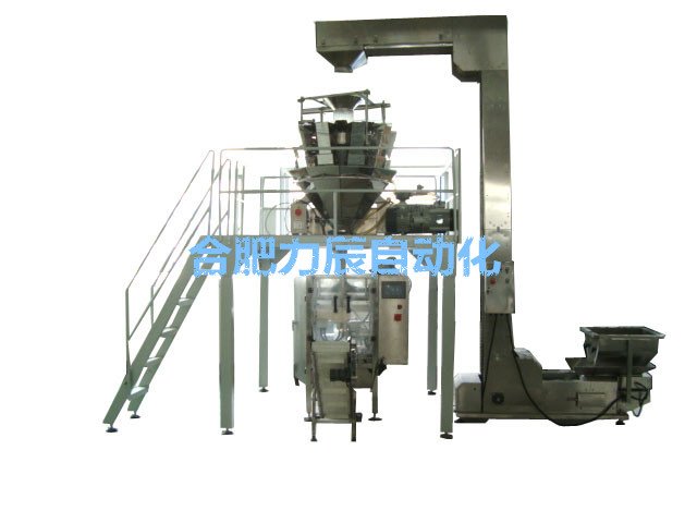 此机组包含了LC360全自动立式包装机,十头组合秤,ZT-2 Z型斗式提升机,倾斜式斗式提升机,LC1000(一体式)真空包装机组以及成品输送机。该机组实现了自动送料,计量,充填,抽真空,封口,整形,打印,冲孔,计数,成品输送与一体。机器的长期正常稳定运行。该机组广泛应用于大米等谷物类产品的真空包装,袋型美观,密封效果好,密封时间长。