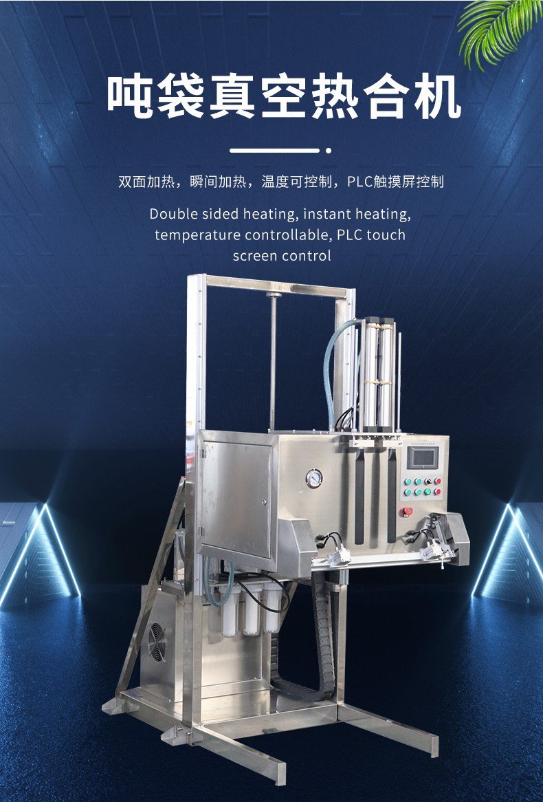 本机用于吨袋产品真空包装。对于塑料袋,铝塑袋,纸塑袋等都可以良好真空封口。常用于食品原料、医药、塑料粒子,尼龙切片,锂电粉末等产品的真空包装。