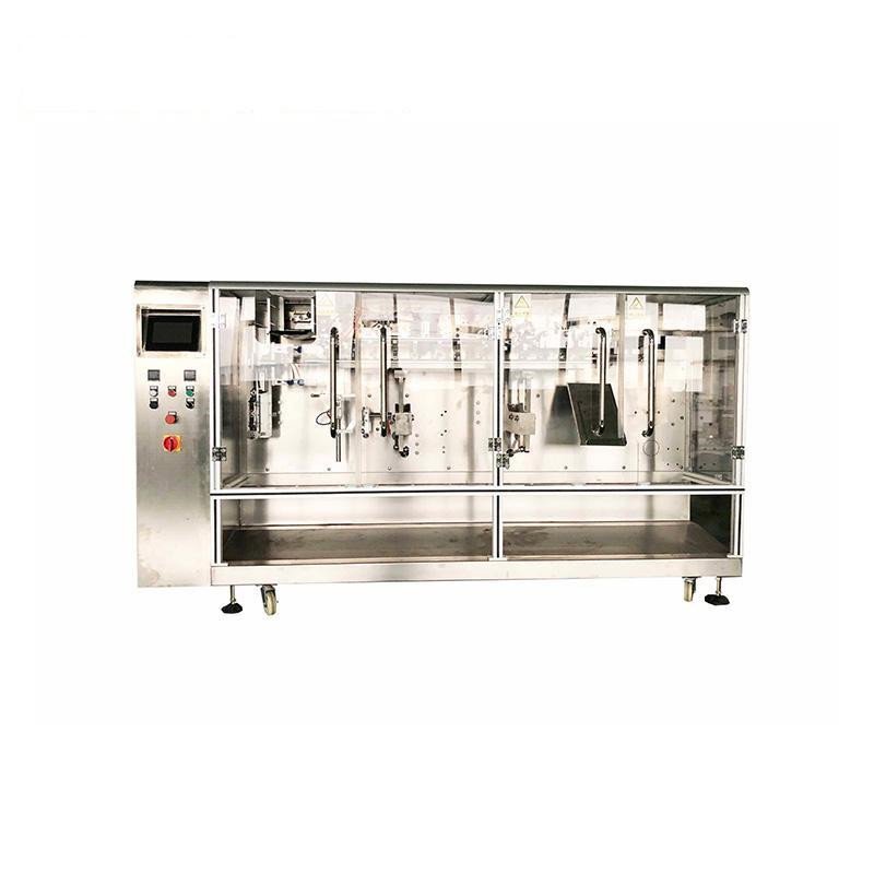 水平给袋式包装机是一款全自动预制袋包装机,适合袋型规格多,包装容量大,产品批量小的用户,可以满足常用的三边封,四边封袋外更能实现挂孔袋、自立袋、异型袋等特种袋型的包装;适合粉剂、颗粒、液体、膏体、固体物等各种物料包装需要;切换袋型简单、快捷;更换不同计量装置,可满足不同产品包装。