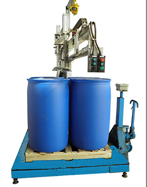 人工移动灌嘴,移动到桶口,定位,给启动灌装信号。