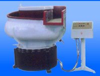 | 应用了国际上先进三元振动加工原理。当工件、成形磨块、化学磨液和水按一定比例放人光整机的容器中。然后启动振动电机。振动电机轴的上下两端装有偏心铁块,它们在水平面上的投影互成一个直角,当振动电机高速旋转时,两个偏心块产生在水平面内沿圆周方向变化的激振力(离心力),使机体产生水平面内的圆周运动,同时由于激振力不通过机体的质心。因而产生激振矩(即倾倒力矩)使容器绕水平轴摇摆,由于容器底部呈圆环形状、各点的振幅不一致,使容器中的成型磨块和工件既竖直中心轴线公转,又绕圆环中心翻滚,其合成运动为环形螺旋运动,同时容器有一螺旋升角,成型磨块和工件沿螺旋面向上滑行,使工件和成型磨块在运动时增加了摩擦力,提高了光整效率。容器为了减少工作中磨块的和工作对其的磨损,降低噪音,在其内壁挂涂耐磨橡胶或聚氨脂。为了改善工作环境,又可另外配置消音罩,适用于小中大零件的光整加工。 400型双向翻板式振动光饰机采用上置漂浮式翻板出料分选机构,振动电机转速由变频控制。 | ||