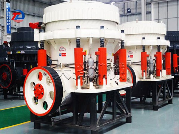 圆锥破碎机在工作时通过电动机的旋转带动带轮和联轴器、 传动轴和圆锥部在轴心线下使偏心轴做周期性旋摆运动。在物料从料口进入破碎腔后因受到偏心轴和轧臼壁的相互冲击挤压、研磨、揉搓从而产生破碎的作用。液压保险系统能在机器发生过铁故障或者闷车现象时通过液压将支撑套和定锥部顶排除出故障物,在起到很好的保险作用的同时大大的降低了维修率及提高生产效率。
