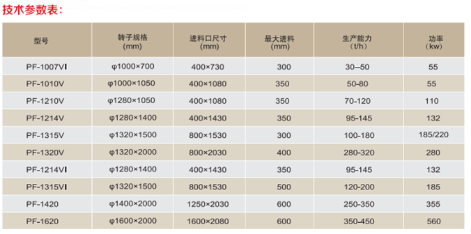 本系列产品具有二级反击板、三级反击板,能处理边长 100-800 毫米以下物料,适用于破碎中硬物料,其抗压强度可达350 兆帕,出料粒度比较小,物料颗粒度良好,呈立方体颗粒。转子部件精心制作,转子动、静平衡好,机器运行平稳,噪声小。