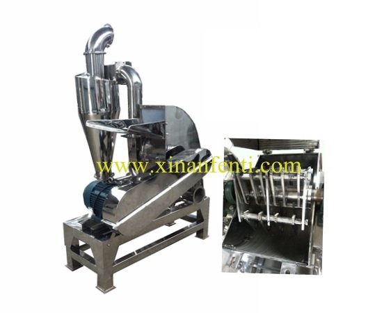 粉碎机是机电一体化产品,是工业生产中的核心设备之一,该机器是机壳一端配以滚动轴承主轴,由电机带动主轴及紧固在主轴上的涡轮高速旋转。 使涡轮与筛网圈上的磨块组成合理、紧凑的结构,使物料在旋转气流中紧密地磨擦和强烈的冲击研磨,并在叶片与磨块之间的隙缝中,进行再次研磨,通过筛网的调节使物料粉碎至5目-80目之间。通俗地讲,是物料通过与本机相配的喂料机构由顶部喂入,在高速旋锤片打击和筛板磨擦作用下,物料逐渐被粉碎,并在离心力的作用下,穿过筛孔从底座出料口排出。