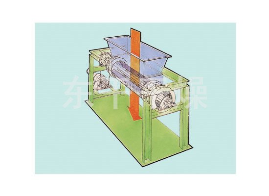 ◎水平挤出成型机: 由加料斗、二根辊子和U形振动网构成。以增大物料的表面积为目的,造粒物料与振动网接触,由旋转辊子的强制压力挤出网外,形成圆柱形的颗粒。