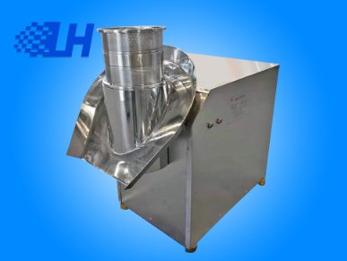 粉状物料与粘合剂制成软材,投入不锈钢筛筒内,受旋转的压刀的推动,挤压,通过反向旋转的筛筒被挤成圆柱状颗粒,同时被筛筒外固定切刀剪切制的合格颗粒,通过转动的集料盘自动出料。