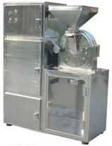 本机的工作原理是物料进入粉碎室,在高速旋转的活动盒与固定盘间受齿的冲击、剪切、磨擦及物料间的相互撞击的作用下被粉碎、经筛选网筛选后即成为所需的粉料。本粉碎机组的粉碎机、物料收集箱和吸尘器、全部采用不锈钢材料制作。符合药品生产的“GMP”的要求。