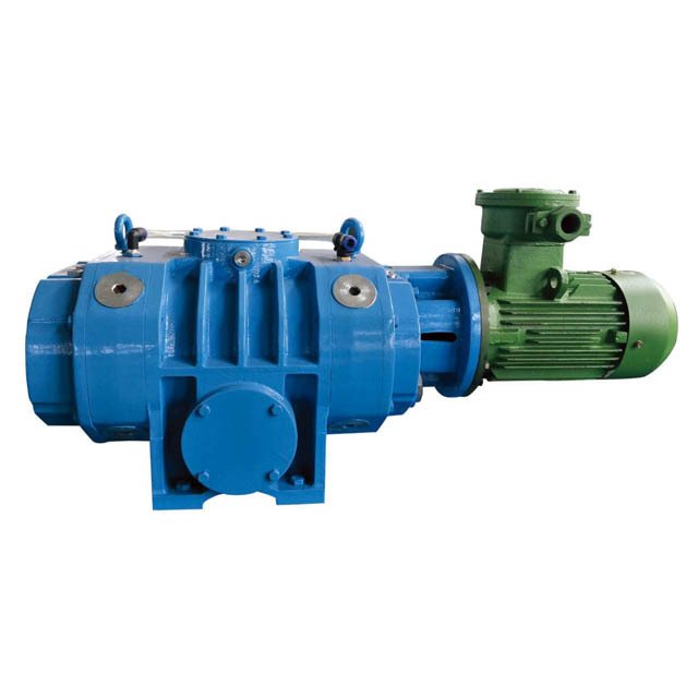 罗茨真空泵又称机械增压泵,是一种容积式干式真空泵,是目前获得中、高真空的主要抽气设备之一,其工作原理与罗茨鼓风机相似,是利用两个8字形转子在两个半圆形的泵腔内作同步反向转动,从而完成吸气和排气的过程。该泵不能单独使用,必须与前级泵(如螺杆泵、水环泵等)串联使用。罗茨泵的极限压力由前级泵决定,表中数据是以螺杆真空泵为前级泵时的*低极限压力。