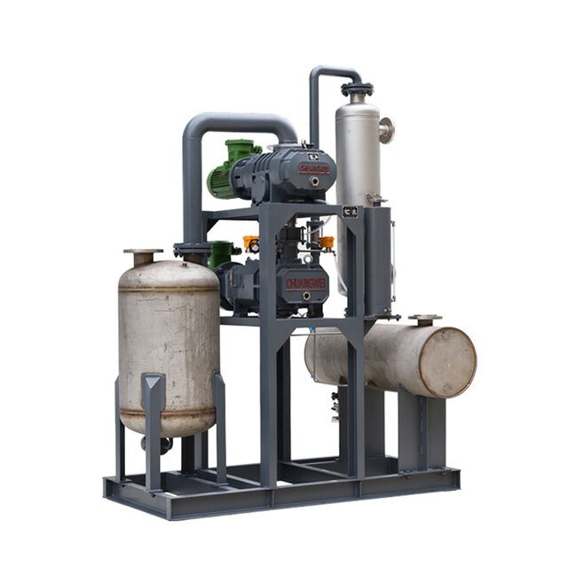 罗茨螺杆真空机组是由普通罗茨泵为主泵或中间泵、螺杆真空泵为前级泵串联组成的无油真空机组。罗茨真空泵与螺杆真空泵工作原理与结构相似,罗茨真空泵与螺杆真空泵组成的机组具有螺杆真空泵的优点,同时通过串联大抽速的罗茨真空泵,成倍增大抽速,提高极限真空度,同时使抽气系统具有较好的节能效果。罗茨螺杆机组真空度高,高真空区内抽气效率高。通过配套的控制系统,机组可以自动启、停,并具有过载、过流、断水等自动保护功能。整个真空机组可以进行防腐处理,使之能用于抽除腐蚀性气体的场合。机组各真空泵采用垂直叠加或阶梯式结构时,机组占地面积小,且各泵与中间管路均不易积存异物,在抽除含少量可凝性气体或少量粉尘的气体时具有明显的优势。