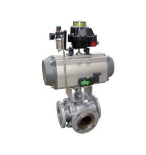 气动三通球阀分L型和T型,介质流通方向见下图。L型三通球阀适用于介质流向的切换,能使相互垂直的两个通道连通:T型三通球阀适用于介质的分流、合流或流向切换,T型孔道可以使三个通道互相连通或使其中两个通道连通,三通球阀一般采用两个阀座结构,亦可根据用户要求采用四阀座结构。