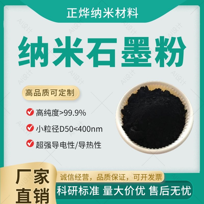 纳米石墨粉(纯度99.95%,中值粒径D50<400nm,纳米级颗粒粒径45nm),具有高导电性、高导热性、优异的机械强度和润滑性能;主要用于锂钠电池负极,提升电池能量密度和循环寿命;极端工况润滑剂;汽车、航空航天领域减重30%;亦可导电浆料、散热材料、生物医疗载体等等。