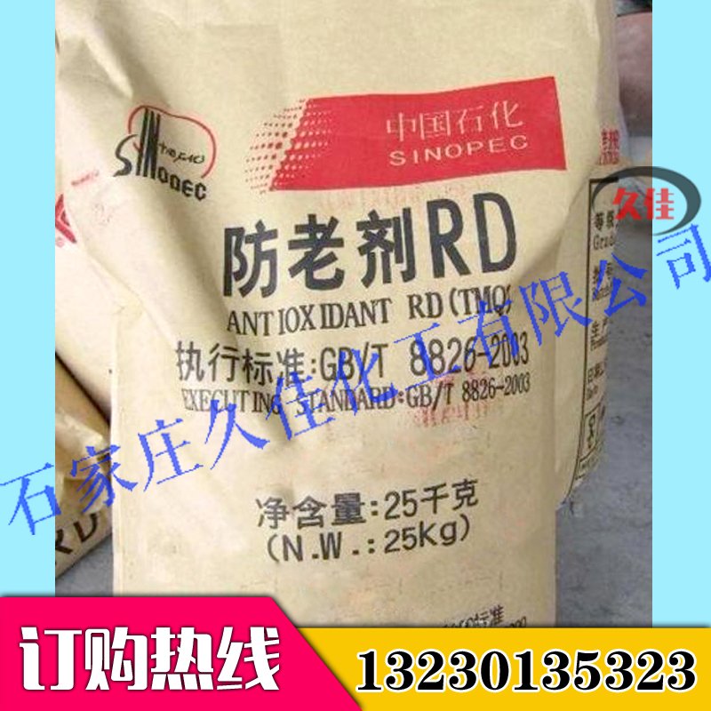 主要用作橡胶防老剂。适用于天然胶及丁腈、丁苯、乙丙及氯丁等合成橡胶。对热和氧引起的老化防护效果**,但对屈挠老化防护效果较差。需与防老剂AW或对苯二胺类抗氧剂配合使用。是制造轮胎、胶管、胶带、电线等橡胶制品常用的防老剂。由于防老剂RD在橡胶中相溶性好,在用量高达5份时仍不喷出,故可提高防老剂的用量以及改善对胶料的防老化性能,在动态条件下使用的橡胶制品中,如轮胎胎面和运输带,可将它与防老剂4010NA或AW并用。