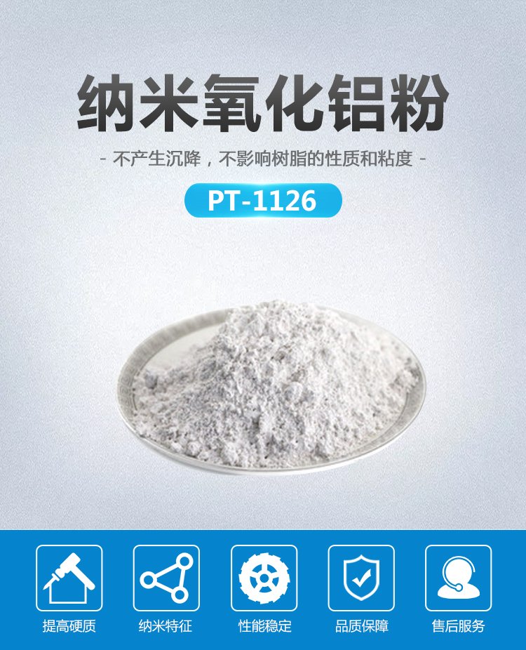 纳米氧化铝粉PT-1126,颜色白色半透明显纳米特性蓝相,含量99.9%。可添加到大部分性树脂、油性树脂内、塑料、橡胶中,添加量为1%-3%,可以提高材质的硬度,硬度可达3-8H。该纳米氧化铝粉PT-1126在溶剂分散后半透明。不产生沉降,不影响树脂的性质和粘度。该纳米氧化铝外观体积特别蓬松,如同鹅毛般轻浮,明显的纳米特征。