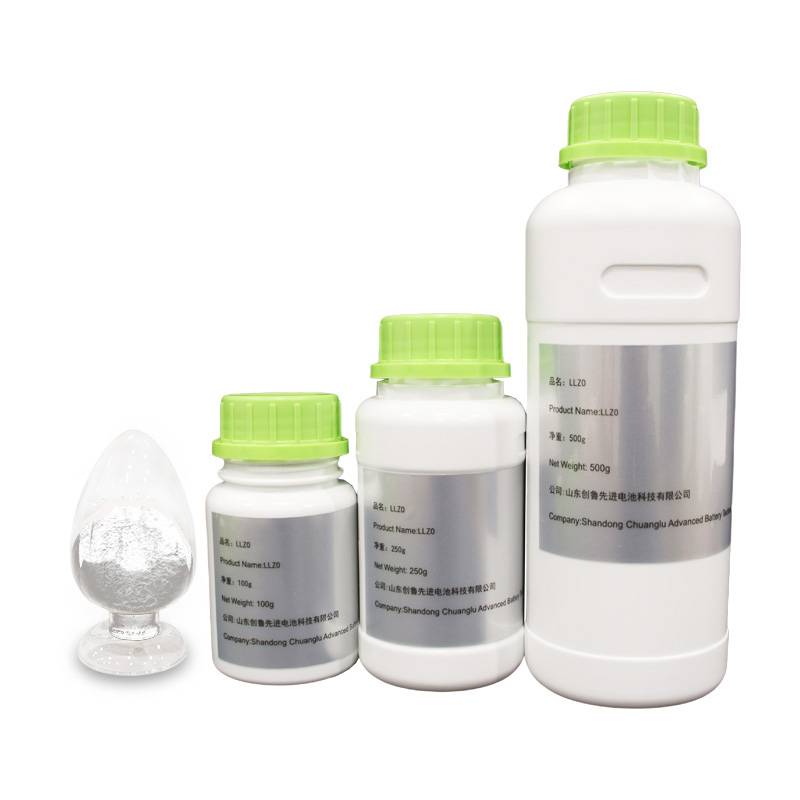 通过本公司合成工艺生产的固体电解质Li6.5La3Zr1.5Ta0.5O12(LLZTO)粉体,外观为白色粉末,粉末颗粒粒径分布均匀,粉末粒径D50=1.79µm。LLZTO的粉末通过XRD测试,衍射峰尖锐,说明LLZTO颗粒结晶性非常好,其所有衍射峰均属于PDF#45-0109,并未出现其他杂质峰,说明制备的LLZTO粉末纯度高。此外,对LLZTO粉体进行主含量和杂质离子检测,检测结果表明,本公司生产的LLZTO粉末主含量高达99.95%,其他杂质离子含量非常少,其含量远远低于检测标准。