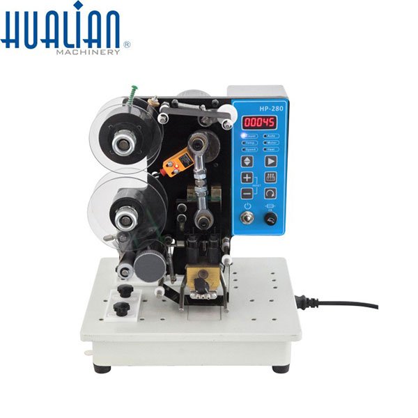 HP-280可以自动连续打印,也可以脚踏开关控制。采用热打印色带,印字清晰,易干不沾。可以在纸张、薄纸板、皮革、塑料薄膜、铝箔等材料上印制标签。采用恒温控制,温度可调,适合不同材料的色带。