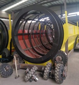 无轴滚筒筛是利用滚筒边缘筒齿捏合产生的惯性力得到的筛分目的,而大部分重力由底部托滚支撑,所以托滚的表面处理是很重要的环节,通常采用复胶方式减小噪音,有些在制作时并没有使用橡胶处理。