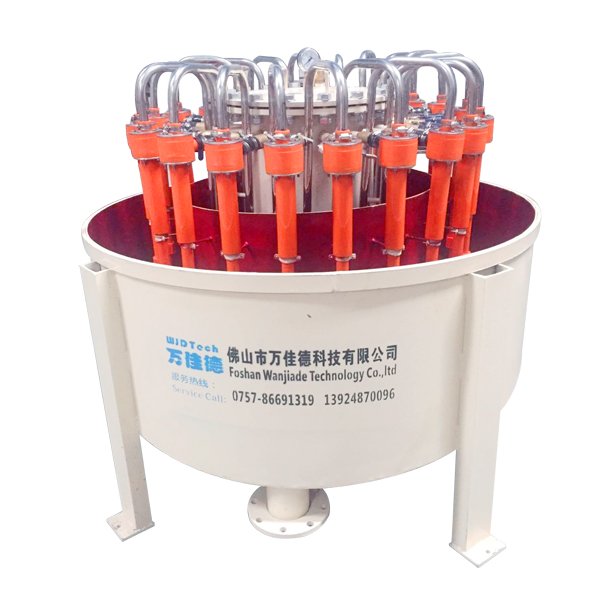 多级旋流器组的工作主要由旋流器总成内十几支到上百支旋流管来完成的;旋流器利用流体力学的原理制作。当有一定压力的浆料,从进浆口的切线方向进入旋流管后,浆料以及浆料中的淀粉,开始沿旋流管内壁产生高速旋转流动。其中淀粉颗粒的运动速度大于水及其它 轻杂质的运动速度。在变径旋流中,淀粉颗粒及一部分水形成环状浆料水柱,贴着锥形内壁向直径逐减小的方向运动。在旋流管中心轴线附近,也会产生一个同向旋转的芯状水柱,其旋转速度略低于外部的环状水柱。浆料中的轻物质(比重小于1)会集中在芯状水柱中央。 由于底流孔面积较小,在环流水柱涌出底流孔时,所产生的反作*,作用于中间的芯状水柱,使芯状水柱向溢流孔运动,并涌出溢流孔。