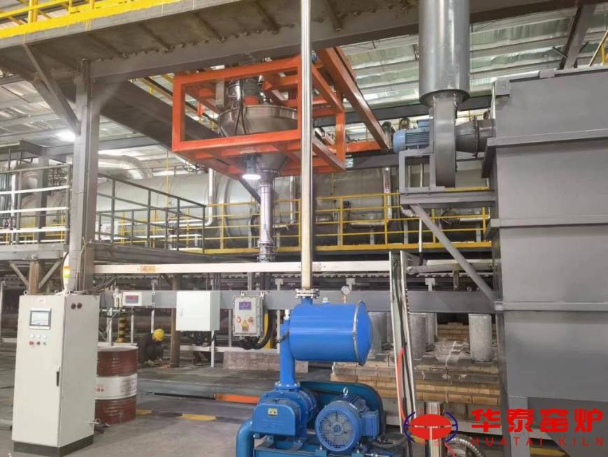四川瑞鞍新材料有限公司锂电池负极材料全气氧保护的隧道窑。我司贝特瑞股份公司开发了锂电池负极材料全气氛保护的隧道窑生产线,采用控氧技术及自动化装卸料机器人突破了传统锂电池正负极材料必须采用的氮气保护电加热辊道窑。该隧道窑采用多道窑门封闭,利用RTO的烟气在窑内循环使窑内达到低氧环境,实现了燃气加热,无需氮气保护。该窑产量大生产成本只有氮气保护电加热辊道窑的1/2,******,补了行业短板。
