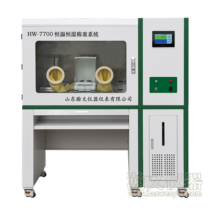 HW7700是山东瀚文仪器仪表有限公司生产的一款手动恒温恒湿称重系统,用于低浓度颗粒物中采样滤膜、滤头的平衡及称重。该系统可高精度控制箱体内部温度、湿度,完全满足HJ836-2017标准要求,高精度的恒定温湿度环境对称重实验更加精确。该系统采用分体式设计,底部有6位万向轮及固定座,方便移动及稳固该系统,配备台湾威纶触摸屏、高强度钣金箱体、德国进口电机、欧姆龙继电模块、自动报警系统,可一次预恒重100张47mm滤膜 /36张,90mm滤膜 /30个滤嘴或滤筒(可通过多放样品架进行扩展),可内置一台十万分之一精密天平并针对天平采取了五级防震措施,采用离子吹扫装置除静电,箱体上有两个手套操作入口,整个称量过程在密闭的洁净环境下完成,可以有效防止环境尘埃污染,保证称量结果准确可靠。