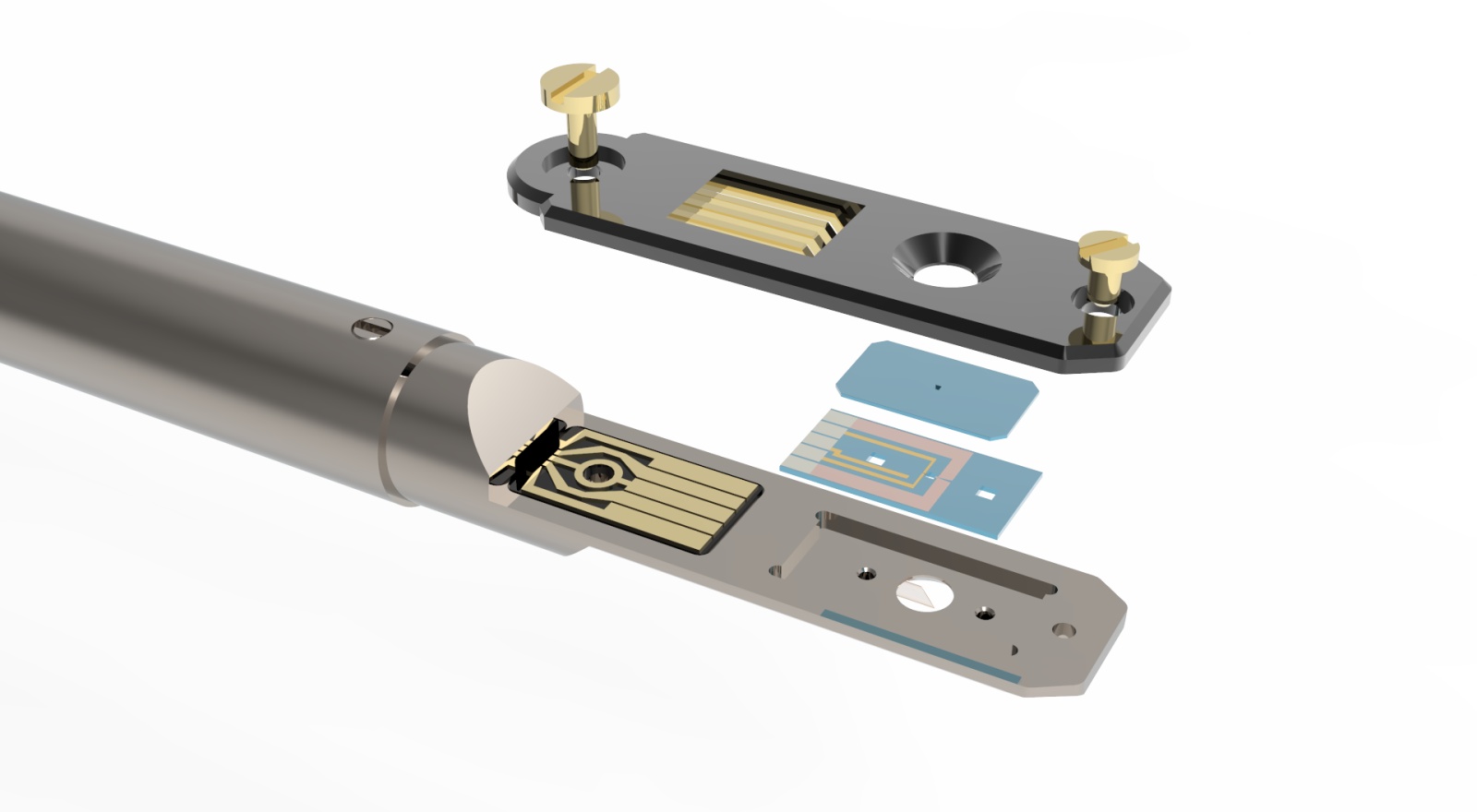 原位液体多功能集成样品杆(光-电-热)是在原位样品杆内部构建小型的液氛纳米实验室,在液体环境内对材料进行原子分辨高时空精度分析。而且可以根据客户需求结合MEMS微加工工艺内置加热模块、光学模块和电学模块,通过微纳芯片对单个纳米结构进行外场控制进行热学、光学及电学性质的测量。并可在物性测量的同时,动态、高分辨地对样品的晶体结构、化学组分、元素价态进行综合表征。