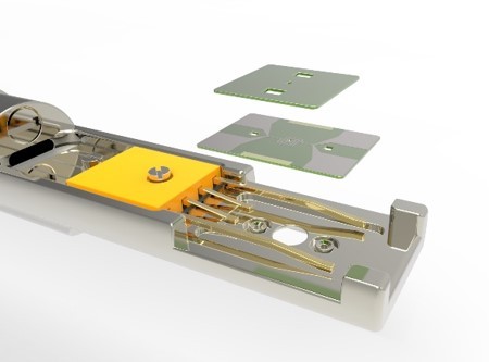 程序升温原位气体反应系统是在标准的样品台基础上搭建可视化NONA-LAB和四电极反馈控温模块,在透射电镜中实现样品的气氛环境皮米级高分辨成像和精准、均匀、安全控温,温度精度优于±0.1K,**温度1000℃,**气压2000mBar。通过精确的热场模拟及独特的芯片设计,实现无漂移加热过程,可在加热升温过程中实现实时观测成像。原位气氛反应纳流控安全管理系统实现纳升级别流体引入,高效精确控制气体池中的流体的流速流量,*低为10nL/s,引入流体在极其微量级别,即使在芯片窗体薄膜破裂的情况下,也不会有大量气体渗漏,使得电镜的安全得以保证,实验不受影响可持续进行。