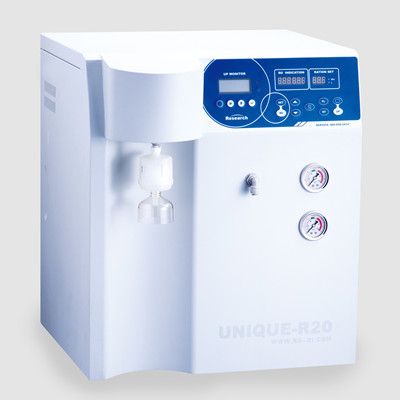 Unique是一款以市政自来水为水源,同时产出初级纯水(Type III)和超纯水(Type I)的台式一体化多功