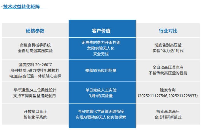 该系统实现了自动关盖拧紧、自动充气、自动控温反应、自动降温放气、自动开盖等一系列传统釜需要人工操作的所有实验步骤,极大程度的解放了科研人员的双手,还能够**程度杜绝高危实验带来的人身安全风险。