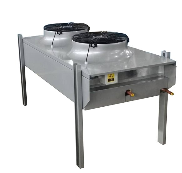CP系列冷凝器采用卧式安装的平板型结构,下面进风、上面出风;主要配套具有较大的换热量需求的采用远置式安装的活塞并联机组或螺杆机组等的使用。