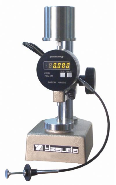 该设备是对塑料膜、橡胶、皮革、纸张及织物等的厚度进行测定的测厚器。根据不同的试片依照JIS标准来确定测定压力与测试头。量规有模拟式和数字式可供选择。