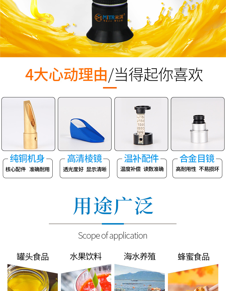 折射仪有手持式折光仪、糖量折光仪、蜂蜜折光仪、 宝石折光仪、数显折光仪、 全自动折光仪及在线折光仪等。