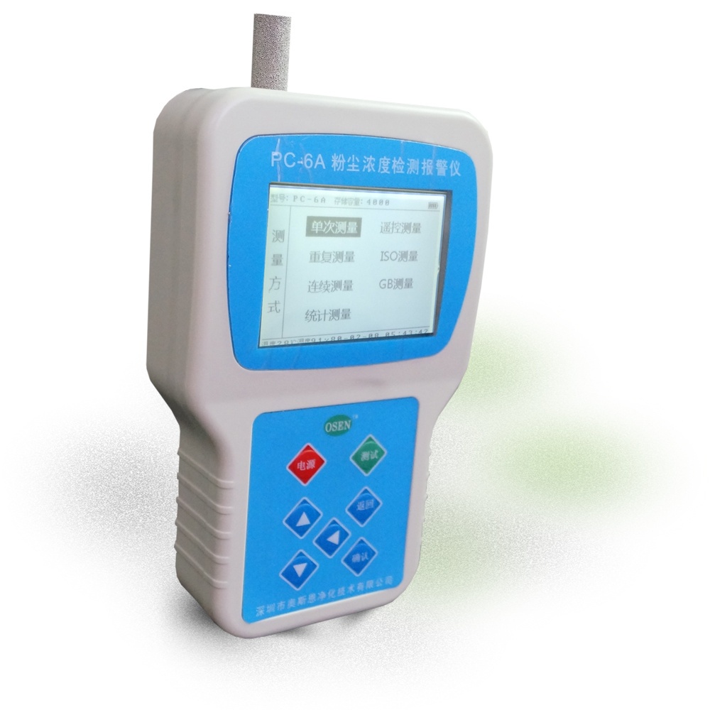 PC-6A粉尘浓度检测报警仪(以下简称袖珍式粉尘仪)用于工矿企业粉尘(TSP, PM10;PM2.5)的浓度检测及超标报警。具有粉尘浓度测试报警和尘埃粒子计数功能,并配有环境温度和相对温度测试装置。PC-6A粉尘浓度检测报警仪具有体积小,携带方便,测试速度快,灵敏度高,稳定性好,重量轻,操作简单,全中文实时快速显示,交直流两用等特点。