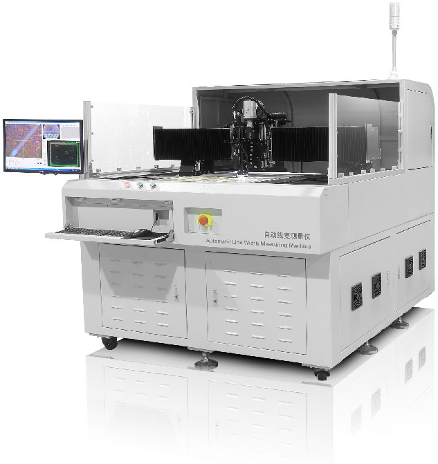 通过影像成像系统及光源从上表面垂直于被测板,呈显影像(相机实时拍图)感测,并将图像传送至电脑测量软件,通过软件测量工具分析图像的“线宽/线距/线宽上下幅/圆/金手指线宽等”标准公差值对比,从而判断被测板上的测量值OK或NG。