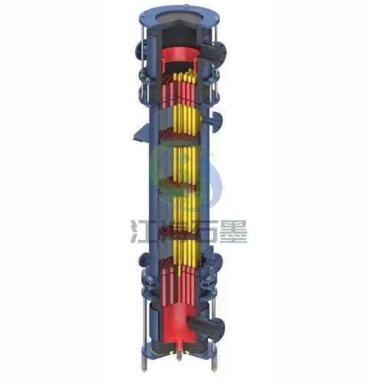 列管式石墨降膜吸收/蒸发器相比圆块孔式石墨换热器具有大通量,流体阻力小,可制做更大规格的石墨热交换器。