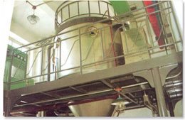 离心式喷雾干燥的雾化过程有些特殊,其喷雾干燥是采用离心式喷咀,料液在高速转盘(周边速度90~140m/s或更高)中受离心力的作用,从盘中甩出而雾化。雾化机理:当料液被送到高速旋转的盘中时,由于转盘的离心力作用,料液在旋转面上伸展为液膜,并以不断增长的速度向盘的边缘运动,离开盘的边缘时,就是液体雾化。机理仍为滴状、丝状和膜状分裂,与盘的形状、直径、转速、进料量、料液的性质等因素有关。