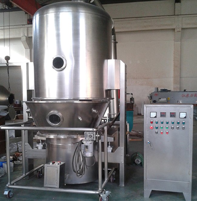 GFG系列高效沸腾干燥机的工作原理:空气经加热净化后,由引风机从下部导入,穿过料斗的孔网板。在工作室内,经搅拌和负压作用形成流态化,水份快速蒸发后随着排气带走,物料快速干燥。