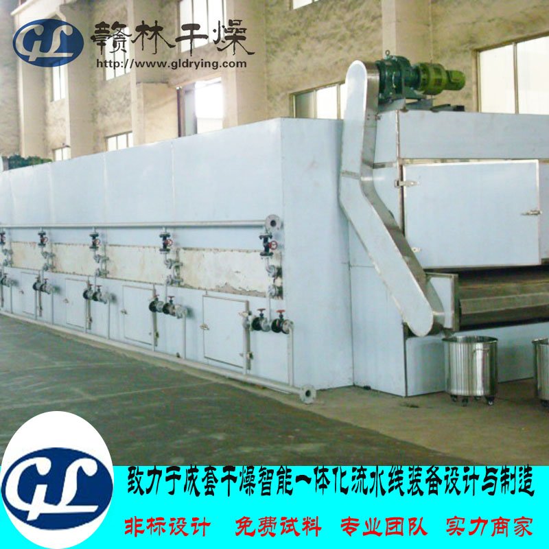 原料 ——> 倒入加料斗内 ——> 提升机——> 网带式干燥机