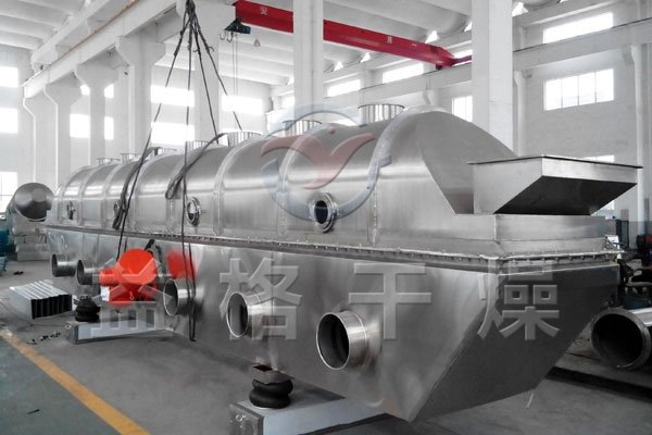 物料自进料口进入机内, 在振动力作用下, 物料沿水平方向抛掷向前连续运动,热风向上穿过流化床同湿料换热后, 湿空气经旋风分离器除尘后由排风口排出, 干燥物料由排料口排出。
