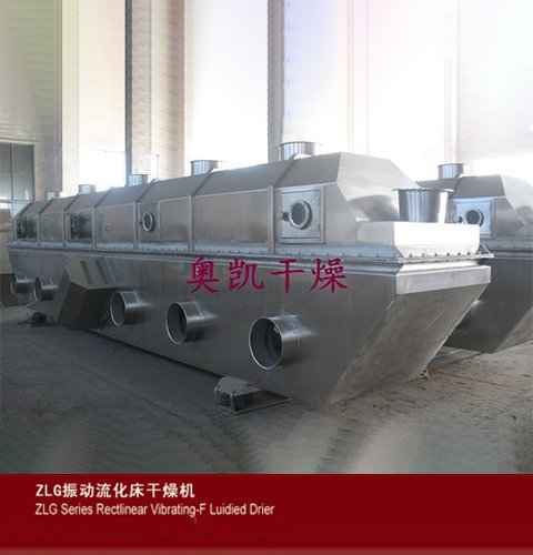 物料自进料口进入机内,在振动力作用下,物料沿水平方向抛掷向前连续运动,热风向上穿过流化床同湿料换热后,湿空气经旋风分离器除尘后由排风口排出,干燥物料由排料口排出。