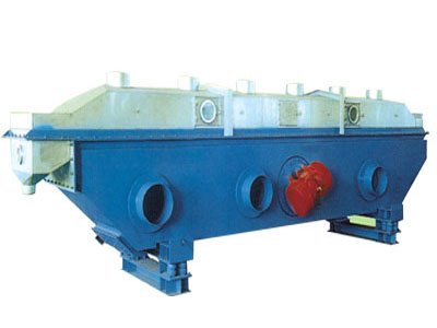 物料自进料口进入机内,在振动力作用下,物料沿水平方向抛掷向前连续运动,热风向上穿过流化床同湿物料换热后,湿空气经旋风分离器除尘后由排风口排出,干燥物料由排料口排出。