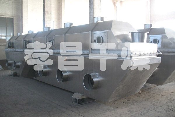物料自进料口进入机内, 在振动力作用下, 物料沿水平方向抛掷向前连续运动,热风向上穿过流化床同湿料换热后, 湿空气经旋风分离器除尘后由排风口排出, 干燥物料由排料口排出。