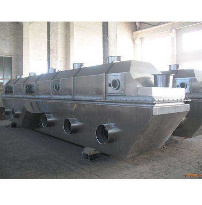 振动流化床干燥机是由物料自进料进口进入机内,在振动力作用下,物料沿水平面流化床抛掷,向前连续运动,热风向上穿过流化床同湿物料换热后,湿空气经旋风分离器除尘后由排风1:3排出.干燥物料由排料进口排出。