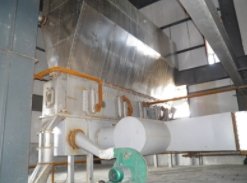 内加热流态化干燥是在常规流化床干燥和间接加热式干燥基础上发展起来的一种新型干燥技术。它将管式热交换器沉浸在流态化干燥物料中,物料脱水所需热量由内加热交换器和流化用热空气共同提供,实现对流和传导换热一体化,以较少的风量满足物料流态化干燥的要求。