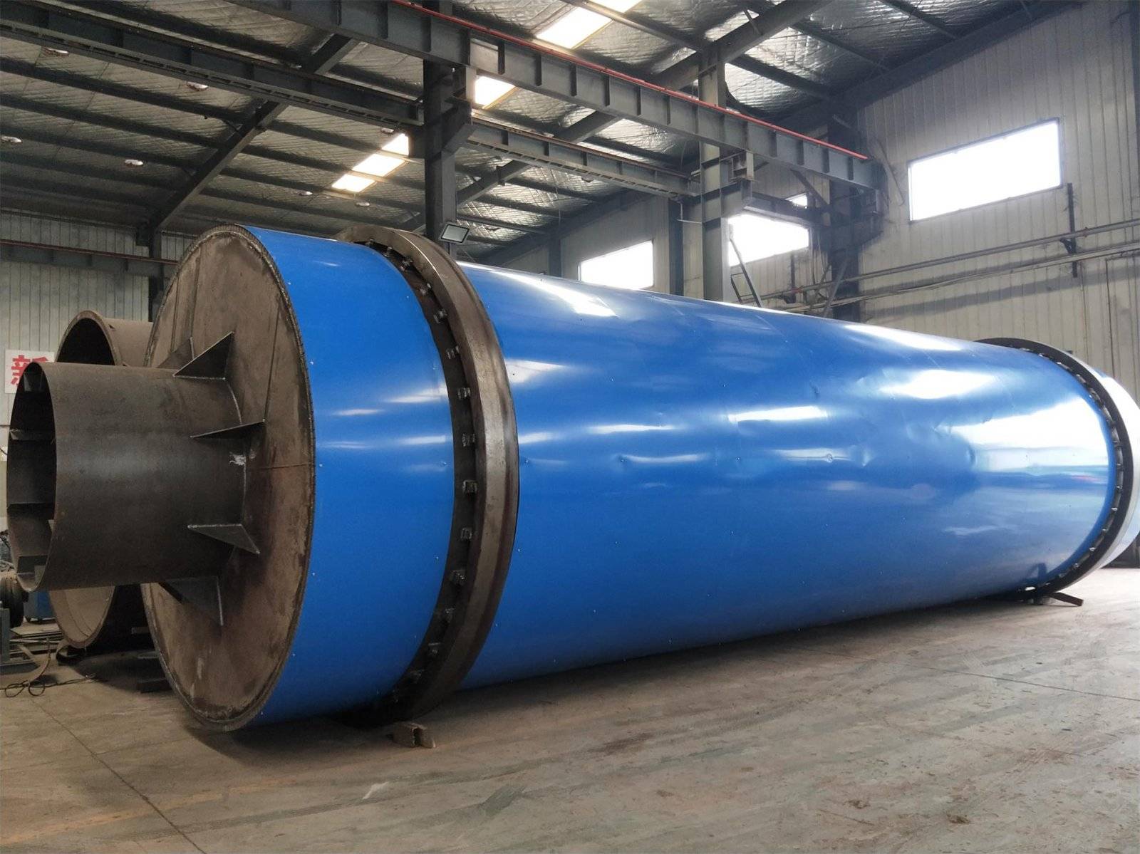 经过脱盐脱水的水分50-60%椰糠由输送机送入滚筒的实现顺流烘干,椰糠在内层的抄板下不断抄起、散落呈螺旋行进式前进,经过内、中、外三层,实现椰糠和热风质热交换,达到干燥效果的椰糠在风力作用下快速行进排出滚筒,没有达到干燥效果的湿牧草因自重而不能快速行进,椰糠在控制行程内进行充分干燥,由此达到干燥效果,椰糠水分降低到15%(客户要求),完成干燥过程,由螺旋输送机排出,滚筒内部安装有特除装置,防止椰糠干燥不均。