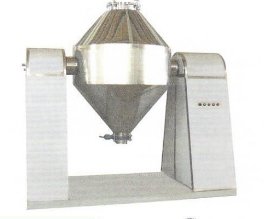 真空干燥机的机体为双锥体的回转罐体,罐内在真空状态下,向夹套内通入蒸汽(热水)加热,热量通过罐体内壁与物体接触,在罐体的不断翻转下,湿物料与受热罐壁面不断更新,干燥物料被蒸汽(热水)夹套间接加热,而使物料水份汽化,汽化后的水份被真空泵抽走;由于操作中设备真空度较高从而有利于物料内部与表面水份的排出