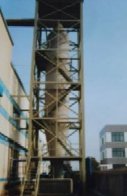 气流式喷雾,又称二流体喷雾,料液由雾化器出料口流出,压缩空气从雾化器的器环口高速喷出(气速达200米/秒以上),当二者在端面接触时,由于二者存在很大相对速度,所产生的高速摩擦力及剪切力将料液雾化,并同干燥塔内的热空气进行接触后得到干燥,成品细粉则随气流进入旋风分离器进行气固分离,空气经袋滤器除尘后由引风机引出。 公司研制的三流式雾化器对高粘度,膏状、胶状物均有较好的雾化效果。